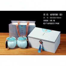 2021新品茶叶包装盒空礼盒新款雀翎茶叶包装西湖龙井绿茶通用陶瓷罐茶叶包装空礼盒 雀翎双罐(蓝色)