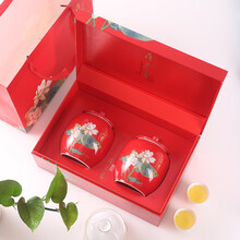 君肴 茶叶包装盒绿茶白茶西湖龙井碧螺春礼盒通用一斤装陶瓷密封罐 陶瓷茶叶双罐【荷为贵红色】