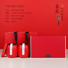 2021新款茶叶陶瓷罐礼盒装空盒西湖龙井茶包装茶叶罐陶瓷密封罐定制包装盒 中号双瓷红色 含手提袋
