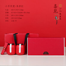 2021新款茶叶陶瓷罐礼盒装空盒西湖龙井茶包装茶叶罐陶瓷密封罐定制包装盒 小号双瓷红色 含手提袋