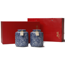 2021新品白茶储茶罐 青花瓷茶叶包装盒空西湖龙井陶瓷茶叶罐白茶普洱通用礼盒定制 倾城红色双罐