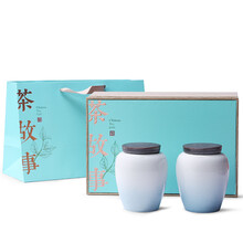 2021新款 西湖龙井礼盒空盒茶叶包装盒空礼盒绿茶白茶毛尖碧螺春茶叶罐礼盒装空盒子 茶故事 天兰(两罐装)
