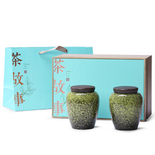 2021新款 西湖龙井礼盒空盒茶叶包装盒空礼盒绿茶白茶毛尖碧螺春茶叶罐礼盒装空盒子 茶故事 淡绿(两罐装)