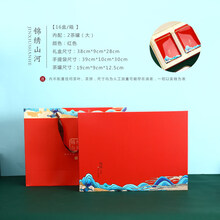 西湖龙井空包装盒 2021新款茶叶包装盒空礼盒2罐半斤装西湖龙井碧螺春空盒 锦绣山河大二合一红色