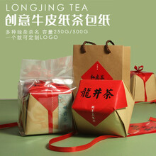 新款西湖龙井牛皮纸包装袋 绿茶叶包装半斤装方包手提袋铝箔内袋 手提袋空白版 10套 250g(半斤装)