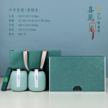 2021新款茶叶陶瓷罐礼盒装空盒西湖龙井茶包装茶叶罐陶瓷密封罐定制包装盒 中号双瓷深绿色 含手提袋