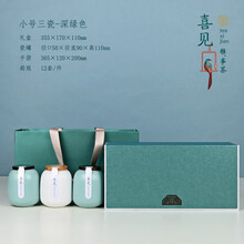 2021新款茶叶陶瓷罐礼盒装空盒西湖龙井茶包装茶叶罐陶瓷密封罐定制包装盒 小号三瓷深绿色 含手提袋