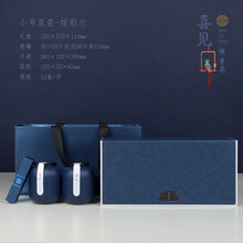 2021新款茶叶陶瓷罐礼盒装空盒西湖龙井茶包装茶叶罐陶瓷密封罐定制包装盒 小号双瓷炫彩蓝色 含手提袋