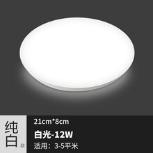 LED吸顶灯具圆形简约现代卧室灯阳灯台厨卫过道灯饰 纯白21cm白光12W