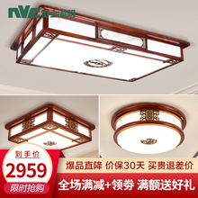 【免费安装+六年质保】雷士照明 新中式led客厅大灯led吸顶灯 古典橡木实木灯具大尺寸1.2米 大尺寸 橡木 两室一厅 zstc02-1