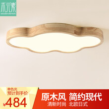 木元素 创意吸顶灯儿童房间灯云朵星星卡通造型灯北欧简约现代原木色灯具温馨浪漫男孩女孩书房灯 大云朵 38瓦 75*46cm(适用8-12㎡) 三色光