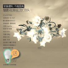 昂的创意美式乡村客厅卧室灯简约浪漫田园餐厅灯具玻璃蓝色花草吸顶灯 8头55*25