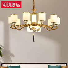 明镜致远 新中式客厅吊灯 禅意全铜灯具大气中国风酒店包间餐厅灯 【10头】直径107*高46CM