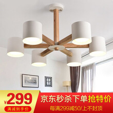 HD照明 LED轻奢灯北欧吊灯客厅灯现代简约餐厅卧室分子魔豆灯具套餐木艺吊灯办公室艺术吧台大厅灯 木艺6头/60瓦/76*41cm/适10-20平