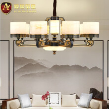 愛居帝皇 新中式全铜客厅吊灯豪华卧室饭厅餐厅灯具办公室别墅楼梯复式楼现代简约天然玉石灯罩 8头吊灯【铜+玉石】
