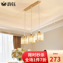 韵钰 欧式灯具奢华大气饭厅吧台灯简约现代家用三头水晶餐厅吊灯 金色-3头长盘