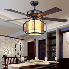 新中式吊扇灯餐厅LED变光餐厅风扇灯客厅卧室电风扇灯木叶吊扇 52寸金丝罩LED36W变光+遥控