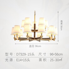 品盟 美式吊灯全铜客厅卧室餐厅欧式现代简约乡村北欧大气灯具7329 D7329-10+5头直径96*56cm