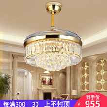 乔博士 隐形吊扇灯LED水晶风扇灯欧式餐厅吊灯简约现代卧室客厅带风扇的灯具 42寸三色变光36+遥控 42寸轻奢水晶LED三色变光配遥控