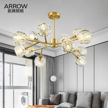 箭牌照明(ARROW) 北欧客厅吊灯后现代全铜水晶吊灯魔豆分子灯餐厅卧室灯具 全铜材质-12头(水晶8cm)5瓦单色