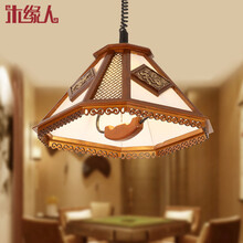 木缘人中式单头小吊灯仿古实木雕花伸缩麻将桌灯餐厅书房灯具时尚棋牌室茶楼包厢灯具创意民宿客栈灯中国风