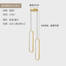 床头吊线灯北欧全铜卧室床头柜小吊灯现代简约客厅背景墙轻奢单头极简长线灯 铝材2头-金色(三色LED)