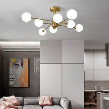 千钰 北欧灯具全铜卧室吊灯后现代书房灯简约餐厅灯创意轻奢房间魔豆分子灯具 全铜灯体6头-奶白灯罩 LED-三色变光(无频闪9瓦)