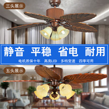 灯扇一体带风扇的吊灯实木餐厅风扇灯客厅书房欧式芭蕉叶片吊扇灯别墅客栈装饰吊灯 52寸5灯配双控