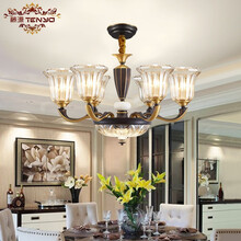 藤源 美式吊灯客厅灯全铜简约大气轻奢卧室灯欧式大厅灯餐厅吊灯别墅复式楼灯具 全铜底发光 6头【直径72*高43cm】赠送光源