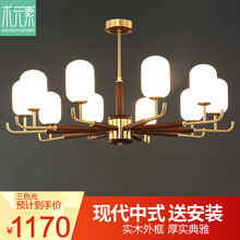 木元素 新中式吊灯实木客厅灯中国风轻奢铜灯后现代混搭设计师风格餐厅书房茶室灯饰 10头 94*73cm 橡胶木+铁 赠品G9光源