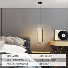 床头吊灯现代简约极简led长线灯饰北欧网红卧室个性小吊灯具单头 A款-黑色12瓦三色变光