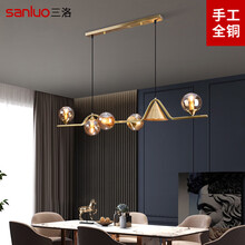 三洛 北欧全铜餐厅吊灯吧台轻奢灯后现代简约创意魔豆服装店灯饭厅led长条设计师款 6头全铜灯体-琥珀灯罩+不含灯泡