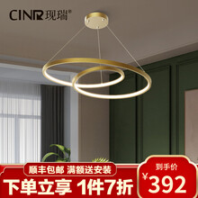 现瑞全铜吊灯北欧极简现代轻奢餐厅卧室创意圆形环形灯具网红灯 小号52CM-无极调光+遥控