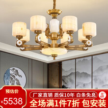 嘉致亮新中式全铜玉石吊灯客厅灯大气奢华复式楼别墅天然云石复古典中国风餐厅卧室灯具 8头 直径83CM 天然玉石灯罩+灯源+防尘盖