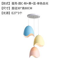 餐厅吊灯现代简约三头餐桌灯具创意饭厅灯北欧个性吧台马卡龙吊灯 蛋壳-圆C-粉+黄+蓝