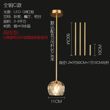 伦腾 水晶卧室床头吊灯北欧轻奢后现代餐厅吧台小吊灯现代简约吊线灯 全铜C款(赠暖光灯泡)
