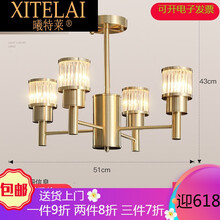 曦特莱轻奢品牌轻奢全铜水晶吊灯客厅别墅个性简约时尚餐厅卧室灯灯具 全铜款 4头朝上水晶款