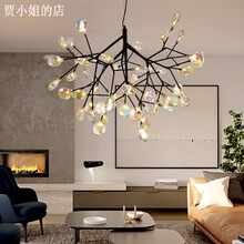贾小姐的店 萤火虫彩色吊灯北欧现代铁艺轻奢个性餐厅灯简约创意个性艺术树枝卧室客厅服装店灯具 54头黑色-混合灯罩其它灯罩请备注