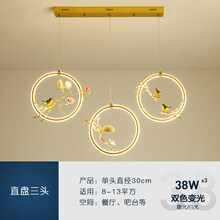 现代简约圆形个性餐厅吊灯led设计师创意灯饰新中式背景墙卧室吊灯 长盘三头-三色切换LED【单头30cm】