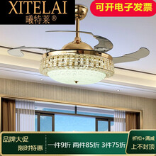 曦特莱轻奢品牌欧式风扇水晶吊灯简约大气餐厅吊扇灯静音变色客厅卧室电风扇灯具 42寸三色lED三档风