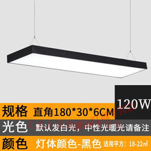 伟邦 简约现代长方形创意平板悬吊灯个性商场工程铝方通 led长条办公室写字楼吊灯 黑色直角180*30cm 白光120W
