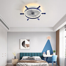 樊胜 北欧后现代风扇吊灯简约儿童卧室灯LED温馨房间灯餐厅灯具隐形吊扇灯饰 蓝色-无极调光44瓦LED
