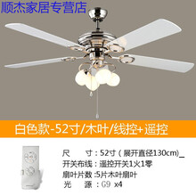 现代吊扇灯客厅餐厅风扇吊灯卧室灯风扇一体家用简约灯扇白色欧式 52寸木叶白灯罩带遥控开关