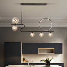 迪涛 轻奢现代长条餐厅吊灯设计师网红前台服装店北欧简约餐桌吧台灯具酒店前台装饰吊灯 黑色款+烟灰色灯罩 LED-三色变光(护眼无频闪)