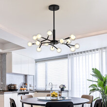 昂的北欧轻奢吊灯现代简约餐桌灯餐厅灯具灯饰创意卧室灯网红客厅吊灯2021新款 15头黑+球中球 LED三色变光