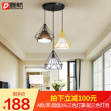 登航 led客厅吊灯书房灯具灯饰北欧后现代简卧室餐厅灯创意个性三头餐吊灯 A款/黑-圆盘3头三色灯罩-配7W三色灯泡