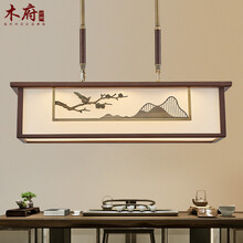 木府新款现代简约新中式木艺吊灯时尚大气餐厅书房茶室长方形灯具创意全铜实木办公室灯中国风 大号长1000宽280高200(不含吊链高度)