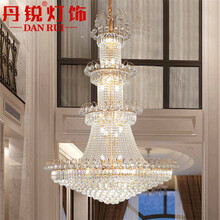 丹锐水晶吊灯金色复式楼客厅大吊灯楼中楼梯水晶长吊灯酒店别墅大堂会所工程灯具 直径2000高度3000MM四层