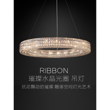 美式出口圆形复古灯后现代轻奢客厅餐厅简约吧台网红水晶吊灯具 圆款银色(直径50*高13cm)
