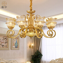 画宇 欧式吊灯客厅灯铜灯餐厅灯卧室灯饰复古美式简约灯具全铜水晶吊灯 10头全铜吊灯(送LED光源)